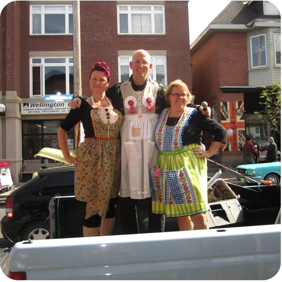Me modelling one-of-a-kind aprons from Heavens to Betsy with local supermodels Jen and Vicky!