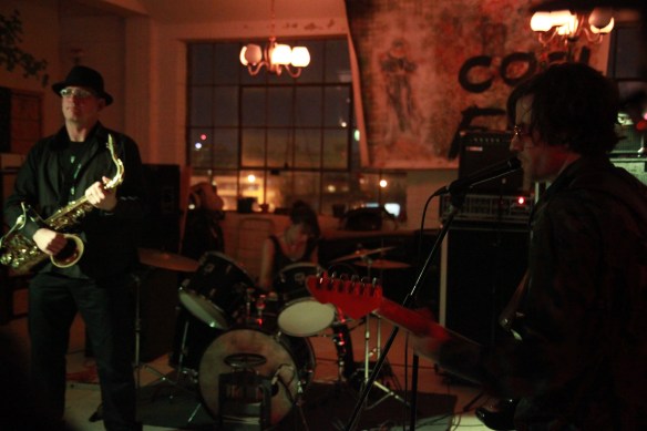 So a while back I came across an ad on a musician’s website here in Ottawa for a ‘beach-thrash’ band looking for a horn player. Needless to say, being the musically curious soul I am, I answered it. And so it was that I recently performed with Caymans at Montreal’s Coolfest 12, an excellent microfestival at a loft called La Brique in Montreal, a welcoming creative environment that serves as home to a collective of about 40 artists, many of whom are key members of Montreal’s ever-expanding DIY noise scene. As part of their friendly festival some members of the collective also cooked up some wondrously gourmet meals for the 75 or so attendees. I found it all eminently civilized and deranged (in the best sense) at the same time.
