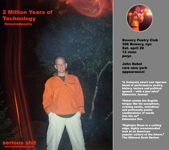 “In the expansive world of the Edmonton Fringe, there isn’t a known category for John Sobol. 2 Million Years of Technology…is a tirelessly smart and rigorous blend of performance poetry, history, lecture and political speech — with a jazz intro. 4 STARS” Edmonton Journal